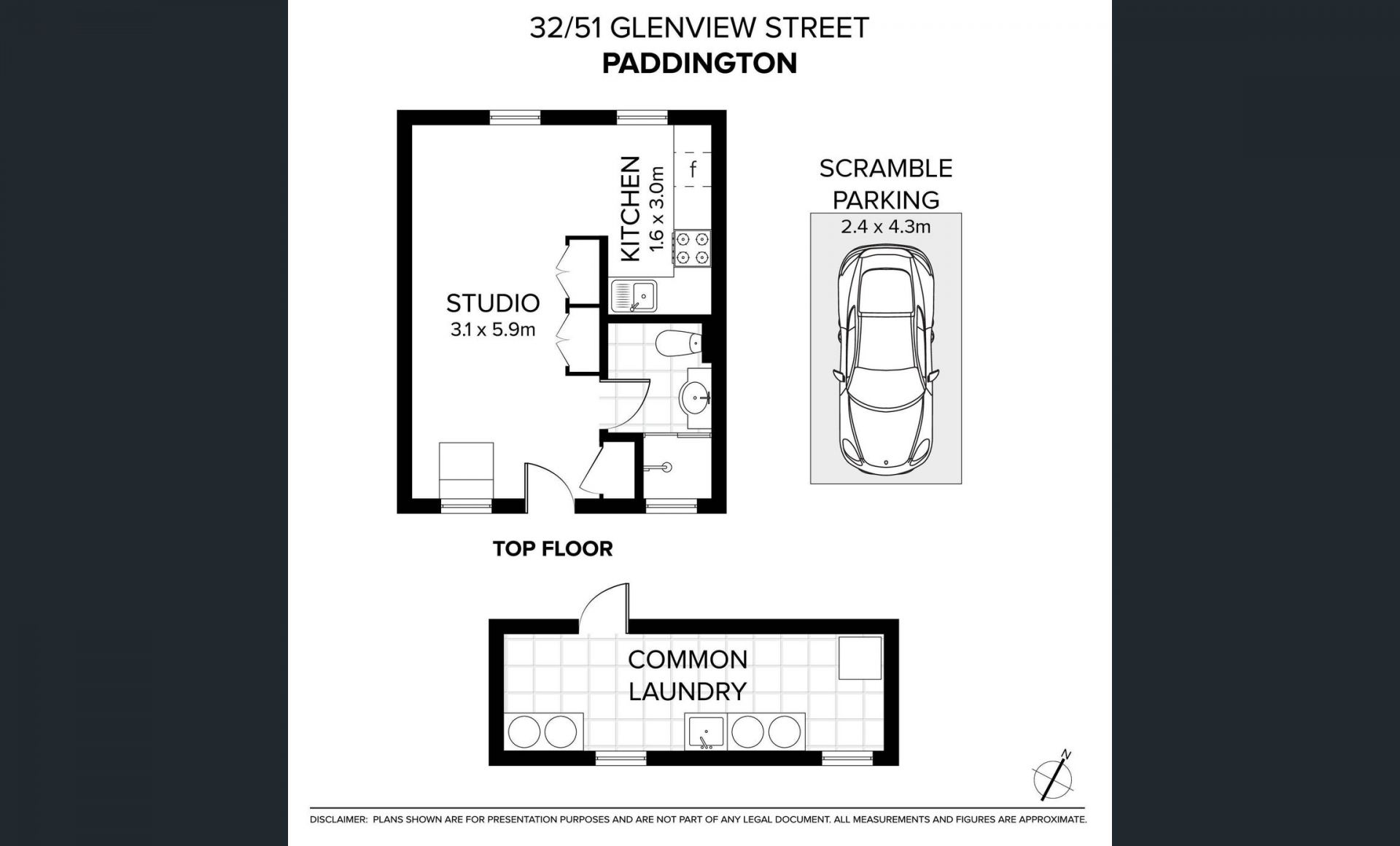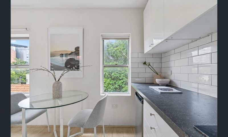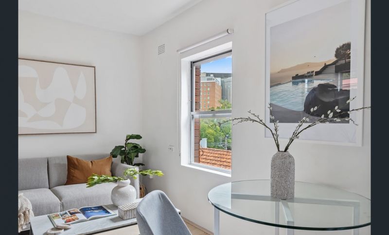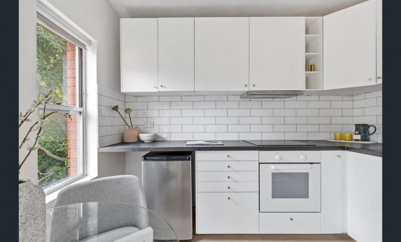 Top-floor apartment in Glenview Apartments. Capturing tranquil district views from its elevated setting, the fully renovated apartment's fresh Scandi-style aesthetic make a perfect leafy enclave on the city fringe, the bright and airy studio comes with scramble parking and is an easy 300m walk up Liverpool Street to Victoria Street's celebrated dining scene and 750m to Kings Cross station.