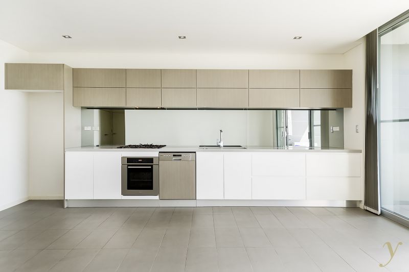 Strikingly sleek and contemporary the floor to ceiling glazing provides for an abundance of natural northern sunlight throughout the open plan layout, complete with fully equipped CaesarStone gas kitchen, tiled living areas, concealed laundry, storage and air-conditioning.