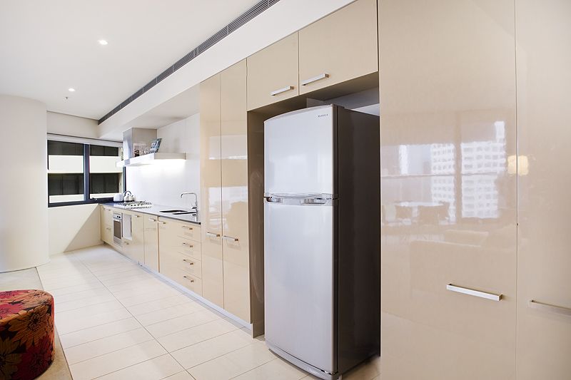 Spacious, light filled, open plan lounge, dining and kitchen area opens to the very spacious balcony taking in wonderful city views.